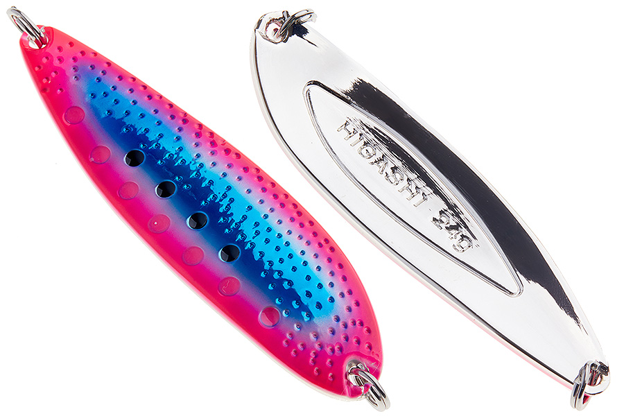 Блесны Dot spoon предназначены в первую очередь для ловли различных видов лососевых рыб , но они с успехом могут ловить и другую рыбу. Разнообразные цветовые сочетания подобраны с таким прицелом , чтобы Вы могли ловить рыбу с разной активностью, для ловли по высокой и низкой воде. В этой серии присутствует как стандартное блестящее покрытие, так и матовое (лучше работают в солнечную погоду).