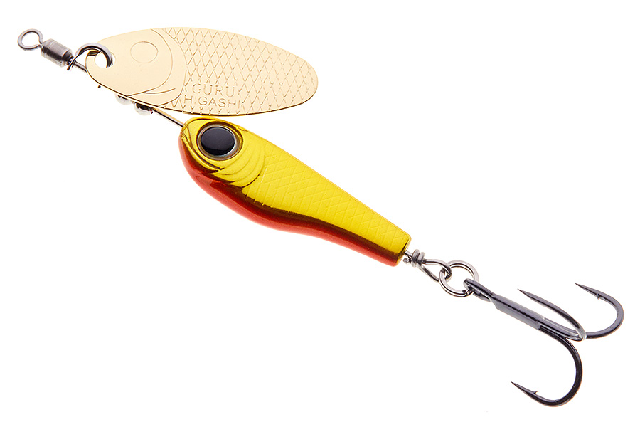 Сердечник блесны выполнен в виде реалистичного тела рыбки, но с увеличенными по размеру глазами- они являются отличным раздражительным фактором, провоцирующим хищника на немедленную атаку. Плоский профиль в виде тела рыбки не только более заметный, создает специфические блики, но и имеет и свою собственную игру. Для оптимизации работы блесны на течении - в ось блесны интегрирован вертлюжок с колечком.