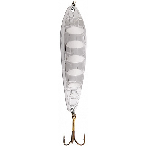 CROCO SPOON-узкотелая, с изогнутым профилем в хвостовой части колеблющаяся блесна. Эта блесна прекрасно летит при забросе и размашисто виляет при проводке. Внешняя сторона приманки, выполненная в виде рельефной поверхности вкупе с нанесенным на нее рисунком, что способствует дополнительному привлечению хищника. Lucky John CROCO SPOON разработана в четырех размерах. Приманки имеют вес 14, 18, 22, 26 грамм, при различной длине, и различной толщине профиля. В связи с этим более легкую блесну эффективнее использовать по мелководью, близ зарослей водной растительности, более тяжелая блесна прекрасно работает так и придонных частях водоема до глубины 3-5 м. Проводку можно осуществлять равномерную, прерывистую, ступенчатую.