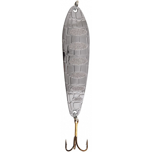 CROCO SPOON-узкотелая, с изогнутым профилем в хвостовой части колеблющаяся блесна. Эта блесна прекрасно летит при забросе и размашисто виляет при проводке. Внешняя сторона приманки, выполненная в виде рельефной поверхности вкупе с нанесенным на нее рисунком, что способствует дополнительному привлечению хищника. Lucky John CROCO SPOON разработана в четырех размерах. Приманки имеют вес 14, 18, 22, 26 грамм, при различной длине, и различной толщине профиля. В связи с этим более легкую блесну эффективнее использовать по мелководью, близ зарослей водной растительности, более тяжелая блесна прекрасно работает так и придонных частях водоема до глубины 3-5 м. Проводку можно осуществлять равномерную, прерывистую, ступенчатую.