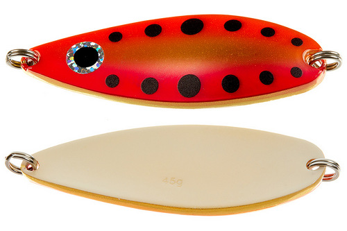 Блесны HIGASHI Akiaji spoon 45g – тяжелые спиннинговые приманки среднего размера, предназначенные для ловли Кеты в реке и море на поплавочную снасть.⠀