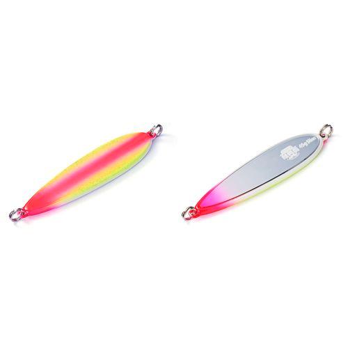 Блесна для ловли лосося (кеты) Jackson Sakedanshaku имеет нетипичную форму. В этой модели их две: Slim, имеющий узкое остроносое тело и Round, круглый, как монета. Плоский корпус отлит из свинца, что при высоком удельном весе и небольшом размере, позволяет этой приманке лететь, словно пуля. Быстро тонет, можно быстрее начать проводку. Комбинация флюоресцентных красок и переливающихся разными оттенками наклеек дают отличный результат. Разработана для ловли кеты на поплавочные снасти в устьевой зоне рек, прекрасно себя ведут на течении, как с наживкой, та и без нее. Гарантированная привлекательность для рыбы с первого заброса.