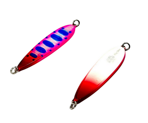 Блесна для ловли лосося (кеты) Jackson Sakedanshaku имеет нетипичную форму. В этой модели их две: Slim, имеющий узкое остроносое тело и Round, круглый, как монета. Плоский корпус отлит из свинца, что при высоком удельном весе и небольшом размере, позволяет этой приманке лететь, словно пуля. Быстро тонет, можно быстрее начать проводку. Комбинация флюоресцентных красок и переливающихся разными оттенками наклеек дают отличный результат. Разработана для ловли кеты на поплавочные снасти в устьевой зоне рек, прекрасно себя ведут на течении, как с наживкой, та и без нее. Гарантированная привлекательность для рыбы с первого заброса.