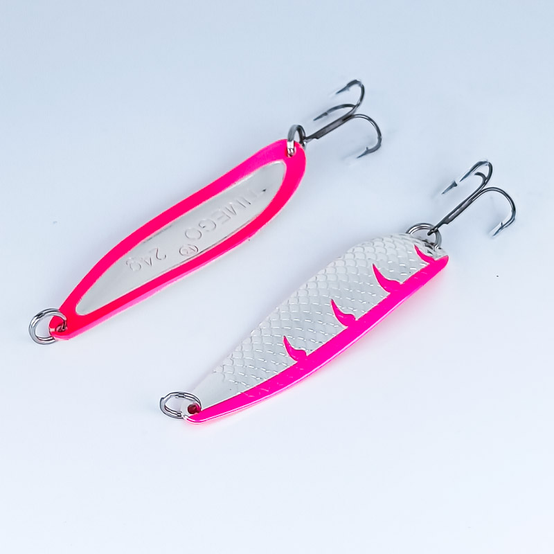 Колеблющаяся блесна от бренда Time Go для ловли лосося. Классическая ложкообразная фрма и подобраная гамма расцветок именно для ловле дальневосточных лососей (сима, горбуша. голец, таймень) делает эти колебалки очень востребованными у рыбаков.