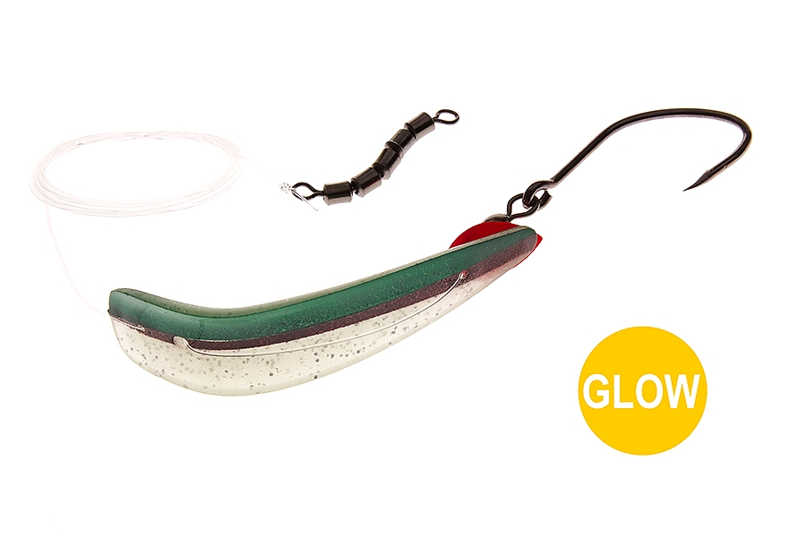 Размер приманки 7,5см, она оснащена монофильным поводком 1,2м диаметром 0,45мм, крючком 4/0 и пятисоставным вертлюгом.