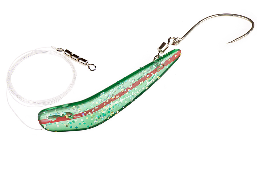 Блесна оснащена специальным монофильным поводком диаметром 0,52мм, крючком в размере #7/0 от VMX в сочетании с вертлюгом #2, а также трехсоставным высокоскоростным вертлюгом #3 для крепеления к флешеру.
