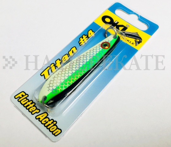 Блесна OKi Titan Spoons обладает активной игрой и предназначены для троллинга на скорости выше 3,5 км в час. Из-за тяжелого удельного веса может использоваться в качестве классической колебалки при ловле спиннингом в заброс. Но ее истинное предназначение- троллинг лосося. Для достижения наилучших результатов используйте эти приманки в связке с флешерами Oki Kingfisher II, Big Shooter наc поводком 120- 135см, но возможно и использование без в качестве глухо оснастки «Пассажир».