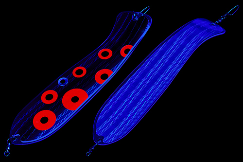 Флешер в форме рыбы прекрасно привлекает лосося на расстоянии. При изготовления тела флешера используется пластик с добавлением пигмента, который светится голубым в ультрафиолете (при дневном солнечном свете). Различные по цветам наклейки предназначены для разнобразных погодных условий. Светонакопительные для утра или пасмурной погоды, также они могут работать в мутной воде. Флуоресцентные цвета могут хорошо работать в солнечные дни. Качественная морская фурнитура позволит ловить не опасаясь за потерю снастей.