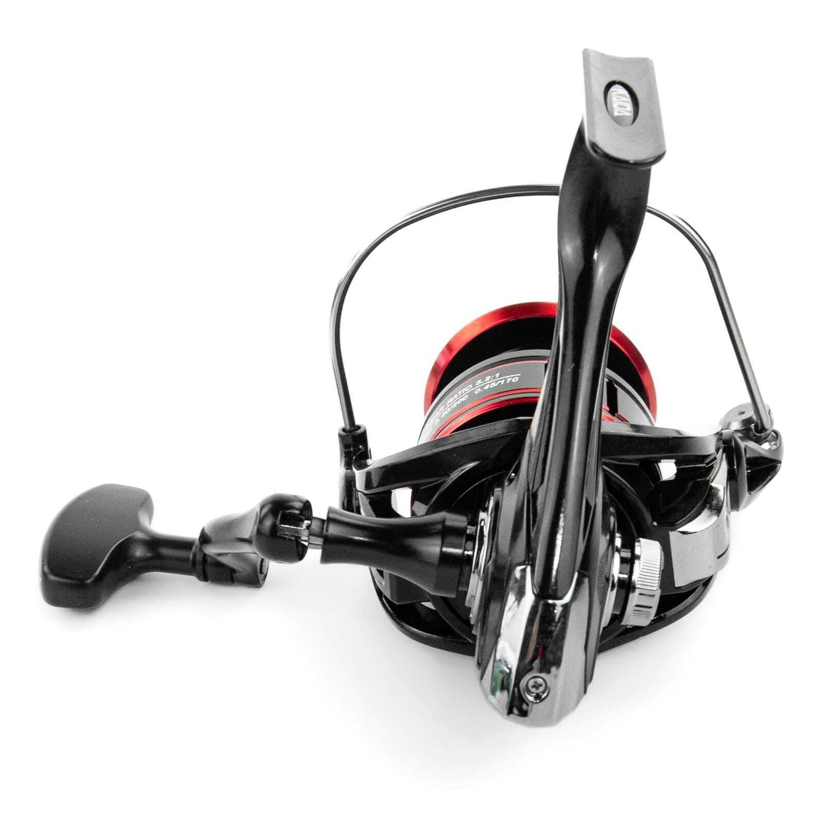 Планетарный тип механизма в катушке обеспечивает качественную укладку лески, а ролик лесоукладывателя специальной геометрии предотвращают её запутывание и перекручивание. Ручка фиксируется с помощью прижимного винта, что позволяет настроить её под себя, переставив под левую или правую руку. Присутствует стопор обратного хода. -