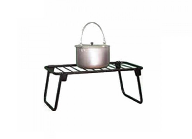Костровая подставка №3 изготовлена в виде столика-решетки. Подставка обладает хорошей устойчивостью и высокой прочностью, позволит быстро приготовить обед в походных условиях, так как размеры подставки позволяют установить одновременно 2-3 кастрюли или котелка. Все элементы покрыты порошковой краской.Также может использоваться как столик для горячей посуды.