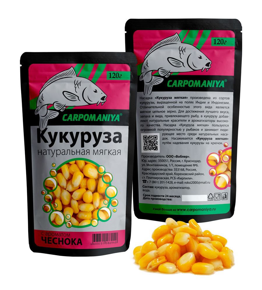 Кукуруза насадочная мягкая КАРПОМАНИЯ (Чеснок) (пакет 120гр)