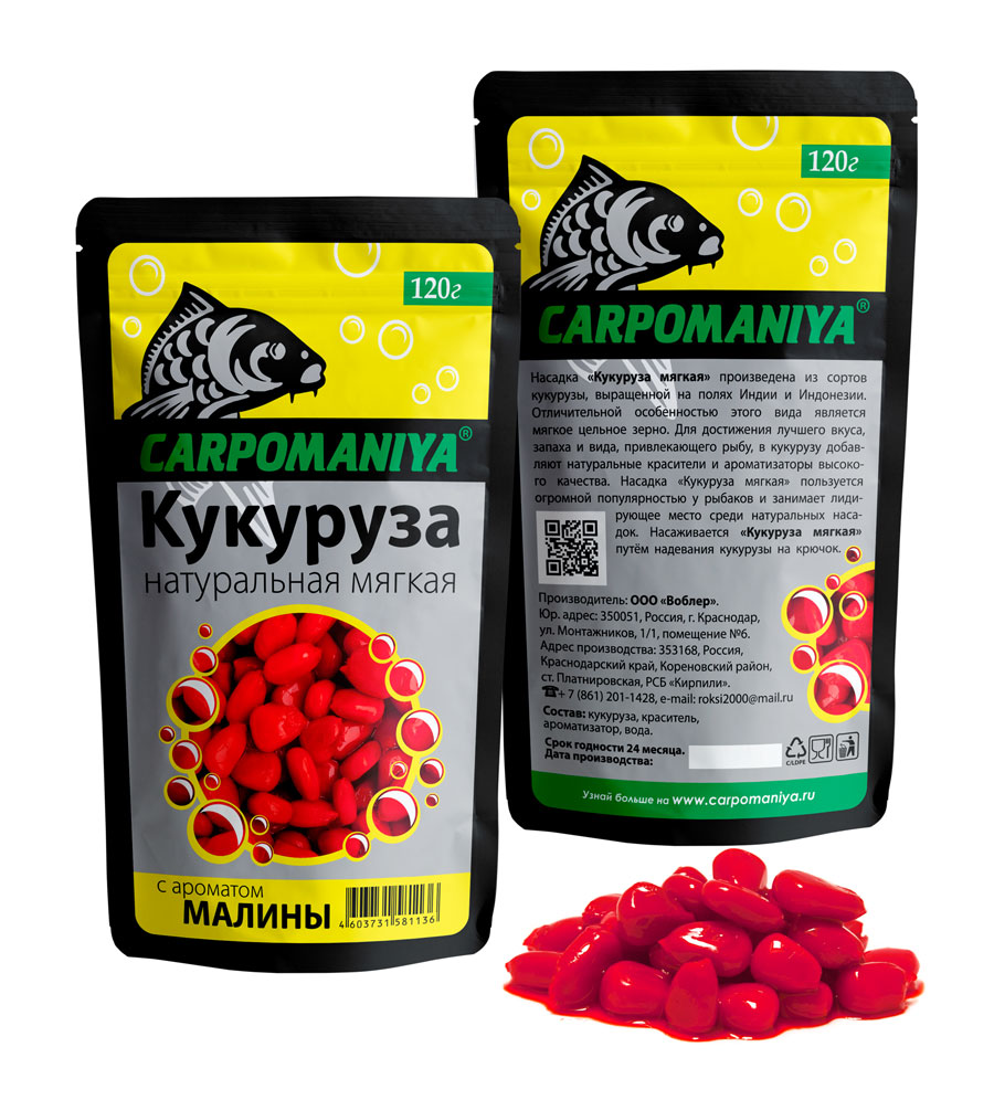 Кукуруза насадочная мягкая КАРПОМАНИЯ (Малина) (пакет 120гр)