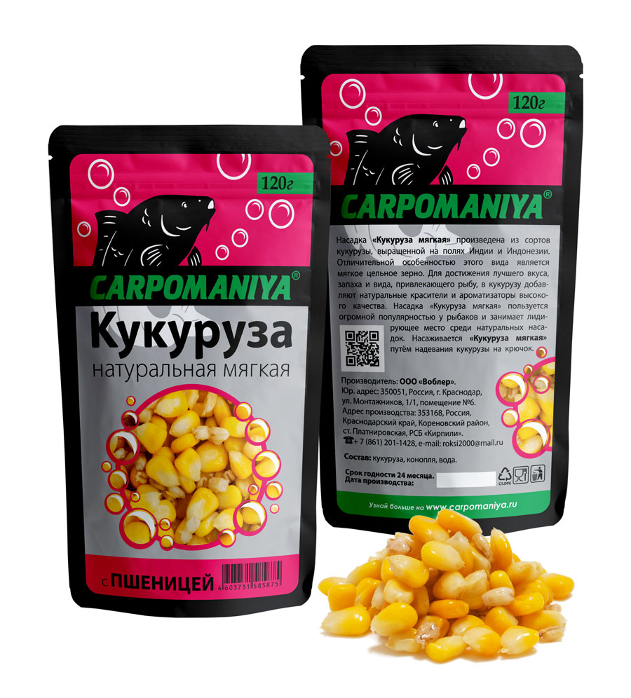 Кукуруза насадочная мягкая КАРПОМАНИЯ (с Пшеницей) (пакет 120гр)