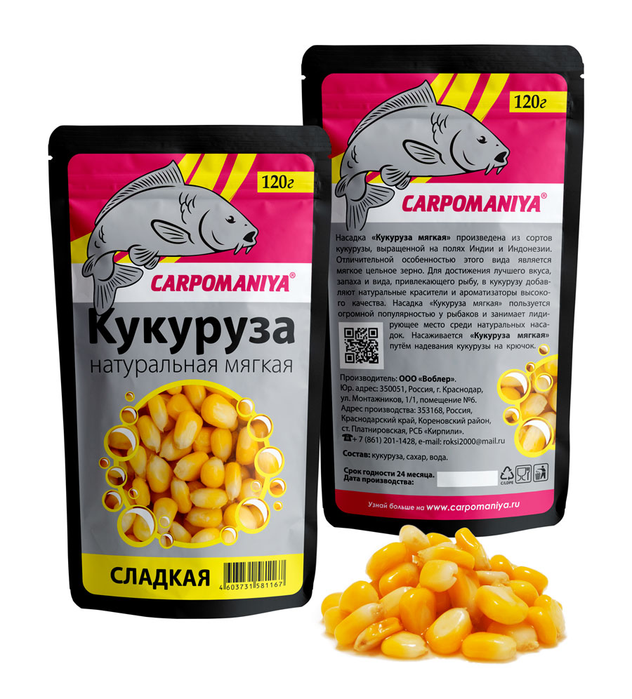 Кукуруза насадочная мягкая КАРПОМАНИЯ (Сладкая) (пакет 120гр)
