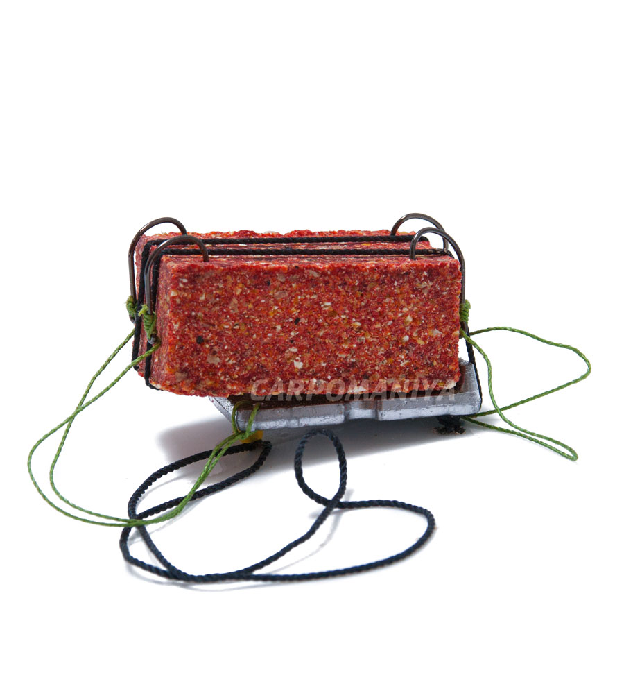 Предназначены для ловли рыб карповых пород ( амур, лещ, карп, карась). Главной особенностью монтажей является то, что кубик крепится к грузилу при помощи петли, которая плотно затягивается. Крючки вставляются в отверстия, находящиеся в верхней части кубика. Диаметр отверстия должен соответствовать толщине крючка. Если отверстие маленькое, его необходимо увеличить при помощи сверла. Для того , чтобы крючок не выскакивал из кубика при забросе, в отверстие добавляют прикормку или тесто.