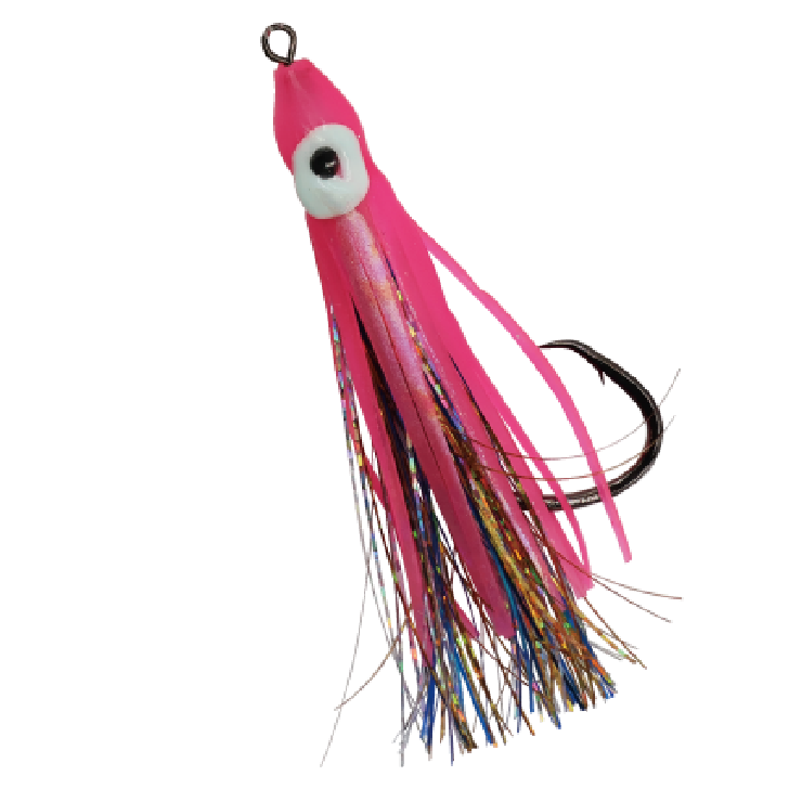 Оснащенный крючком кальмарчик от японской компании Hyabusa. Предназначаен для дооснащения пилькеров, лососевых блесен. троллинговых приманок.