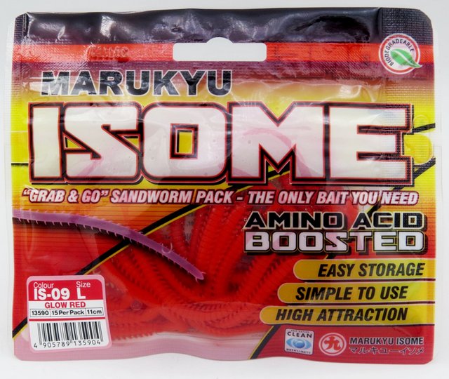 Marukyu POWER ISOME - имитация нереиса (песчаного червя) из биоразлагаемого материала с добавлением аминокислот и аттрактантов. При этом материал хорошо и долго держится на крючке, выглядит и ощущается как реальная, живая приманка. Удобная упаковка с замком позволяет сохранить приманку для многоразового использования. Power Isome хранятся при комнатной температуре, что является большим преимуществом по сравнению с натуральными червями. Может использоваться для ловли самых разнообразных рыб, в том числе мирных.