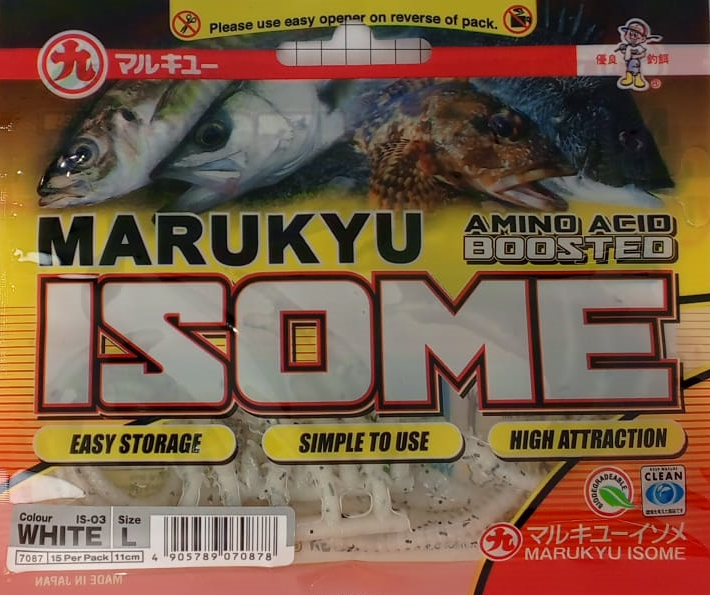 Marukyu POWER ISOME - имитация нереиса (песчаного червя) из биоразлагаемого материала с добавлением аминокислот и аттрактантов. При этом материал хорошо и долго держится на крючке, выглядит и ощущается как реальная, живая приманка. Удобная упаковка с замком позволяет сохранить приманку для многоразового использования. Power Isome хранятся при комнатной температуре, что является большим преимуществом по сравнению с натуральными червями. Может использоваться для ловли самых разнообразных рыб, в том числе мирных.