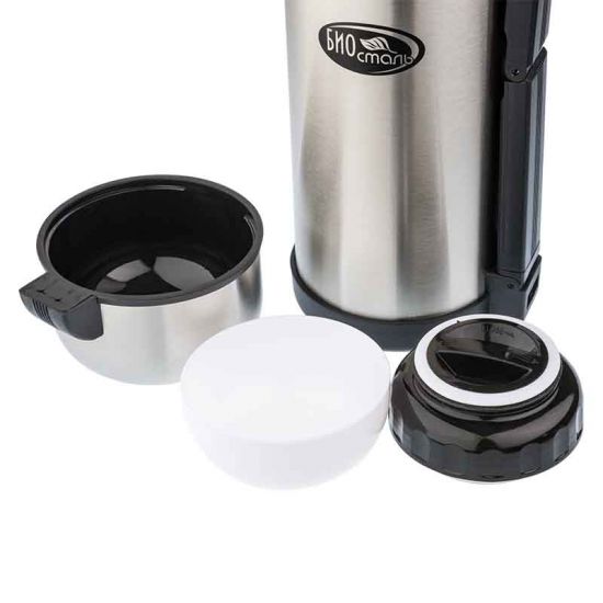 Универсальный пищевой термос NG-1500-1 ТМ «БИОСТАЛЬ» относится к классической серии. Термосы этой серии, являющейся лидером продаж, просты в использовании, экономичны и многофункциональны. Универсальный термос выполняет функции термоса для еды (первого или второго) и термоса для напитков (кофе, чая). Это достигается благодаря специальной универсальной пробке, которая изготовлена из прочного пластика, легко разбирается для мытья и, обладая дополнительной теплоизоляцией, позволяет термосу дольше хранить тепло.