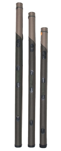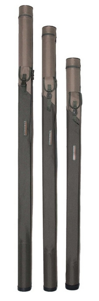 Чехол вмещающий до 3 спиннингов. Оснащён ручкой для переноски и съемным регулируемым ремнём. Имеет наружный карман для подсачника или стоек. Пластиковая труба обтянута мягкой тканью. Дно тубуса защищено пластиковым "стаканом".