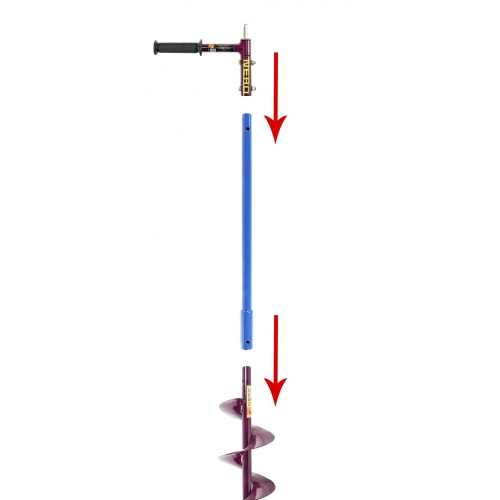 Достаточно на шнек установить наш новый удлинитель длиной 0,25 или 0,5 метра! Если опять мало, то соедините удлинители, тогда лёд в 1,7 метра перестанет быть преградой между Вами и рыбой! -