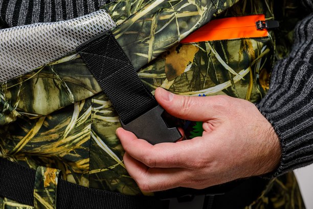 Широкие эластичные регулируемые лямки и поясной ремень.