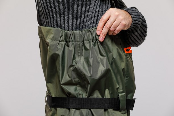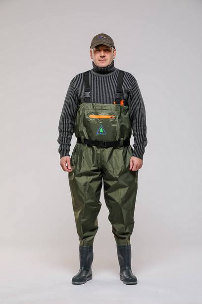 Непромокаемый рыбацкий полукомбинезон из плотного высокоустойчивого нейлона.
