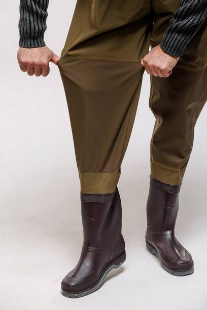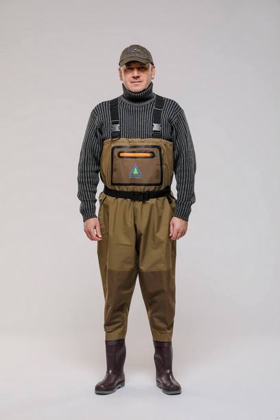 Непромокаемый рыбацкий полукомбинезон из прочной 3-х слойной мембранной дышащей ткани.