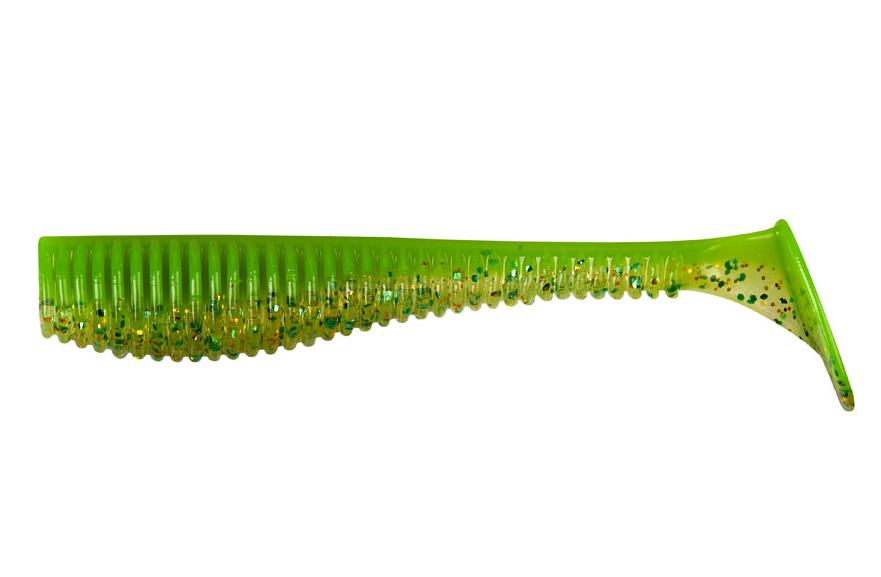 В разработке данной силиконовой приманки применены не только уже зарекомендовавшие себя приемы, но и новые. В частности – это соотношение длины хвостовой части к телу приманки. Пропорции приманки составляют примерно 60% к 40%, что делает хвостовую часть, вкупе с укрупненной пяткой, очень подвижной, что не может не привлекать хищника.