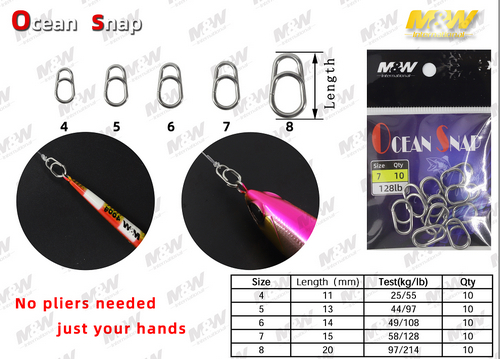Овальные заводные кольца Ocean Snap предзназначены для быстрой и легкой смены приманок.