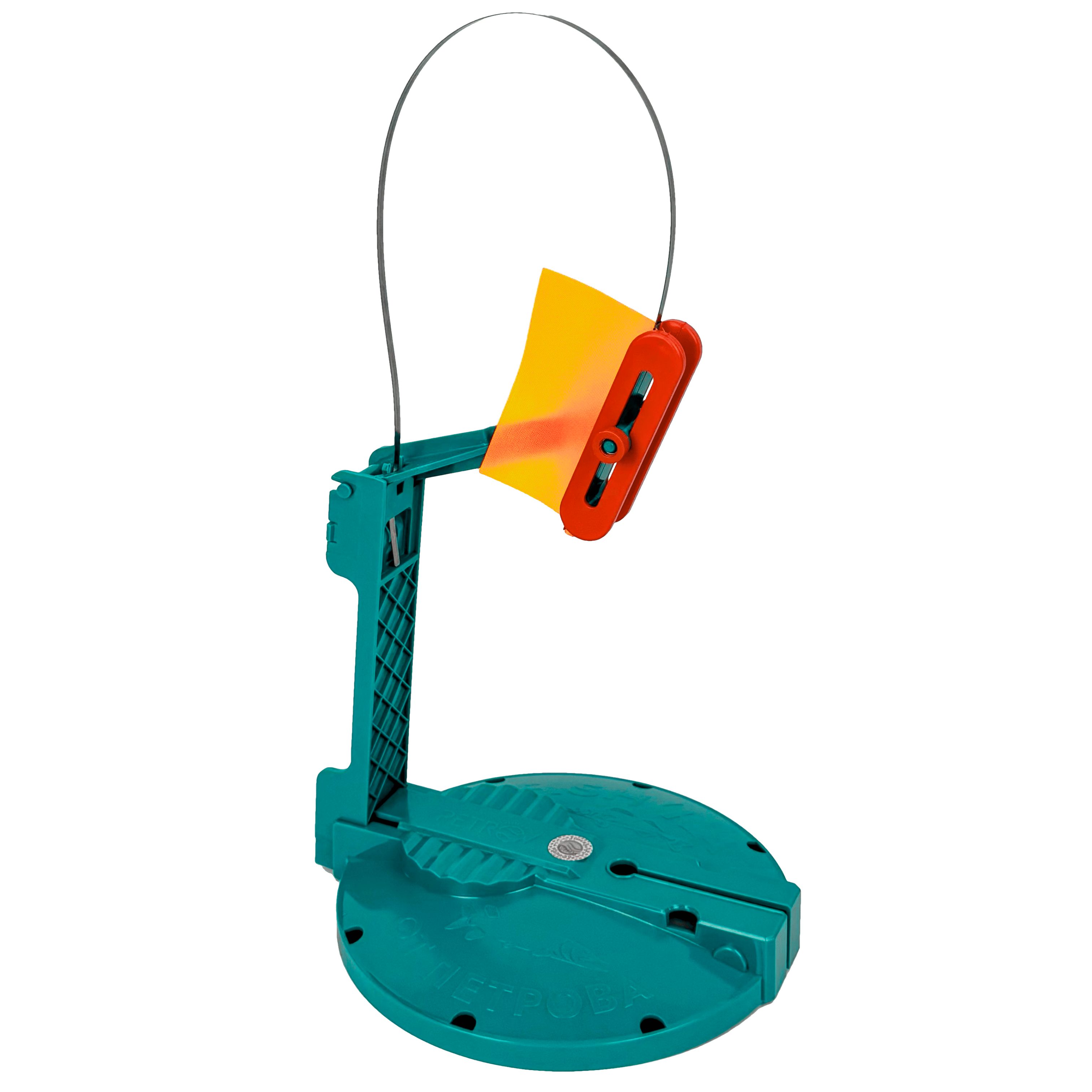 Общая высота 70 см. Высота флажка 50 см, высота стойки 20 см. Яркий оранжевый флажок большого размера, проклеен, прошит двойным швом, со светоотражающей двухсторонней полоской.Регулировка скорости размотки катушки