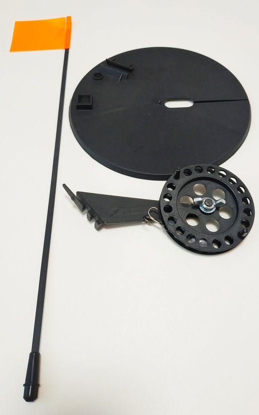 Жерлица зимняя для подледной ловли рыбы состоит из основания, стойки с катушкой и флажка-сигнализатора с фиксатором крепления. Большое и прочное основание жерлицы из морозостойкого полипропилена гарантирует затемнение. Усиленная стойка катушки. Винт-барашек позволяет осуществлять регулировку вращения катушки.