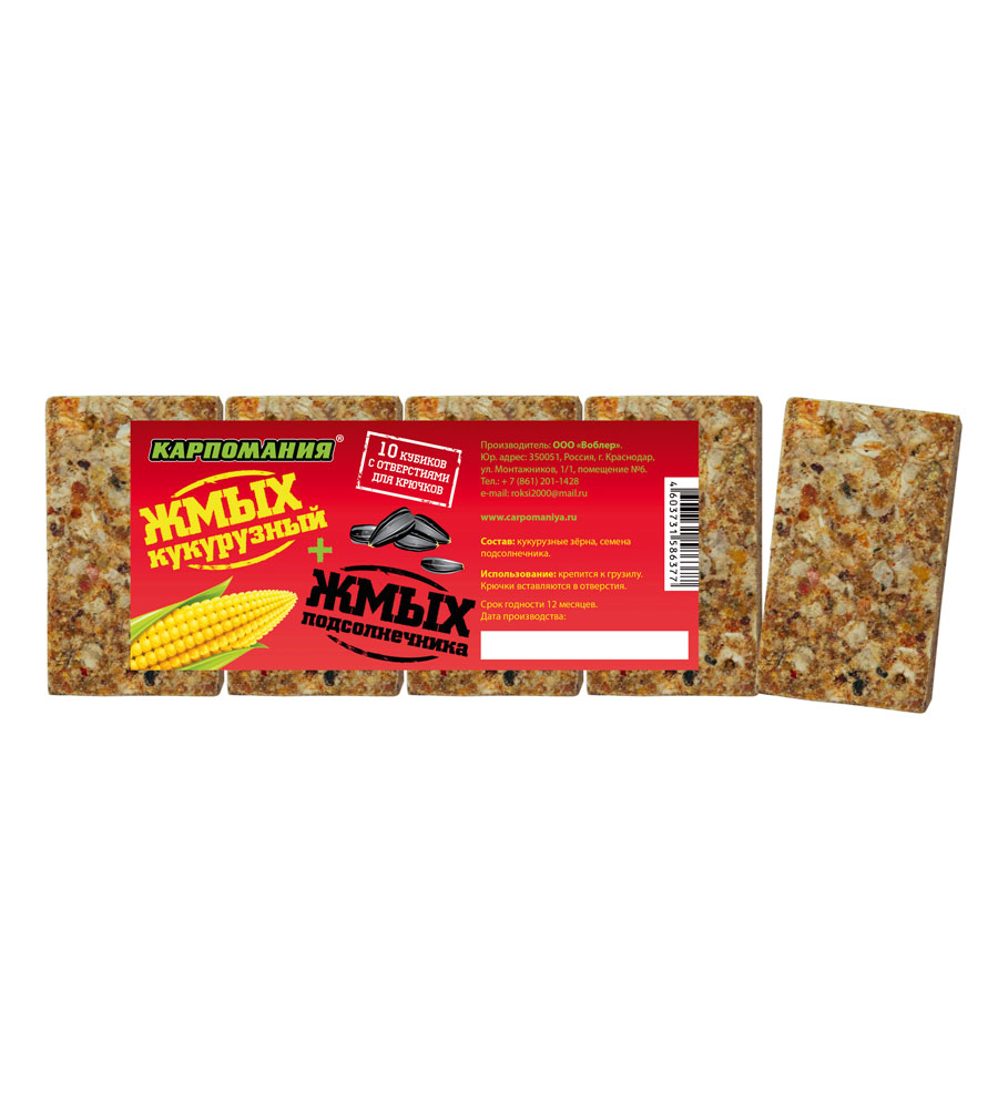 Жмых кукурузный+Жмых подсолнечника КАРПОМАНИЯ (10кубиков)
