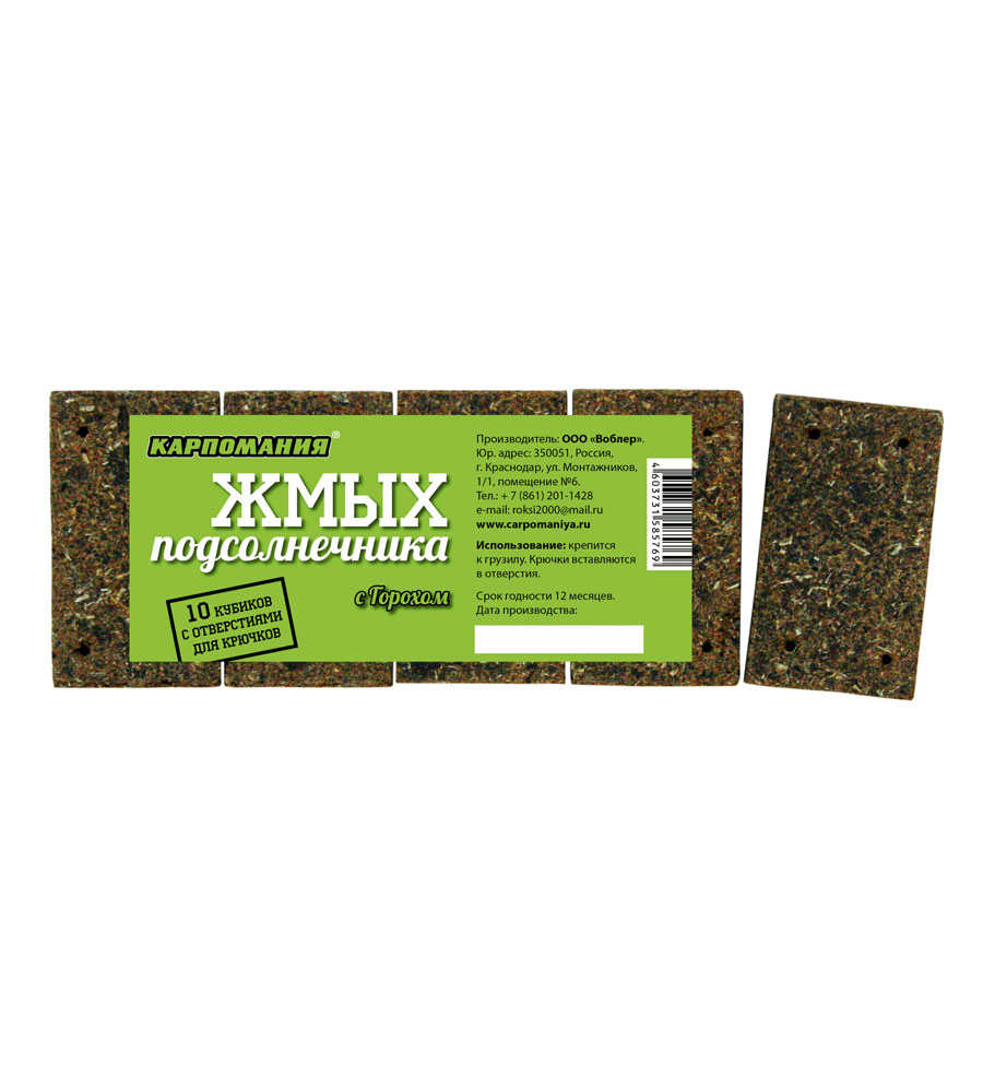 Жмых подсолнечника КАРПОМАНИЯ (Горох) (10кубиков)