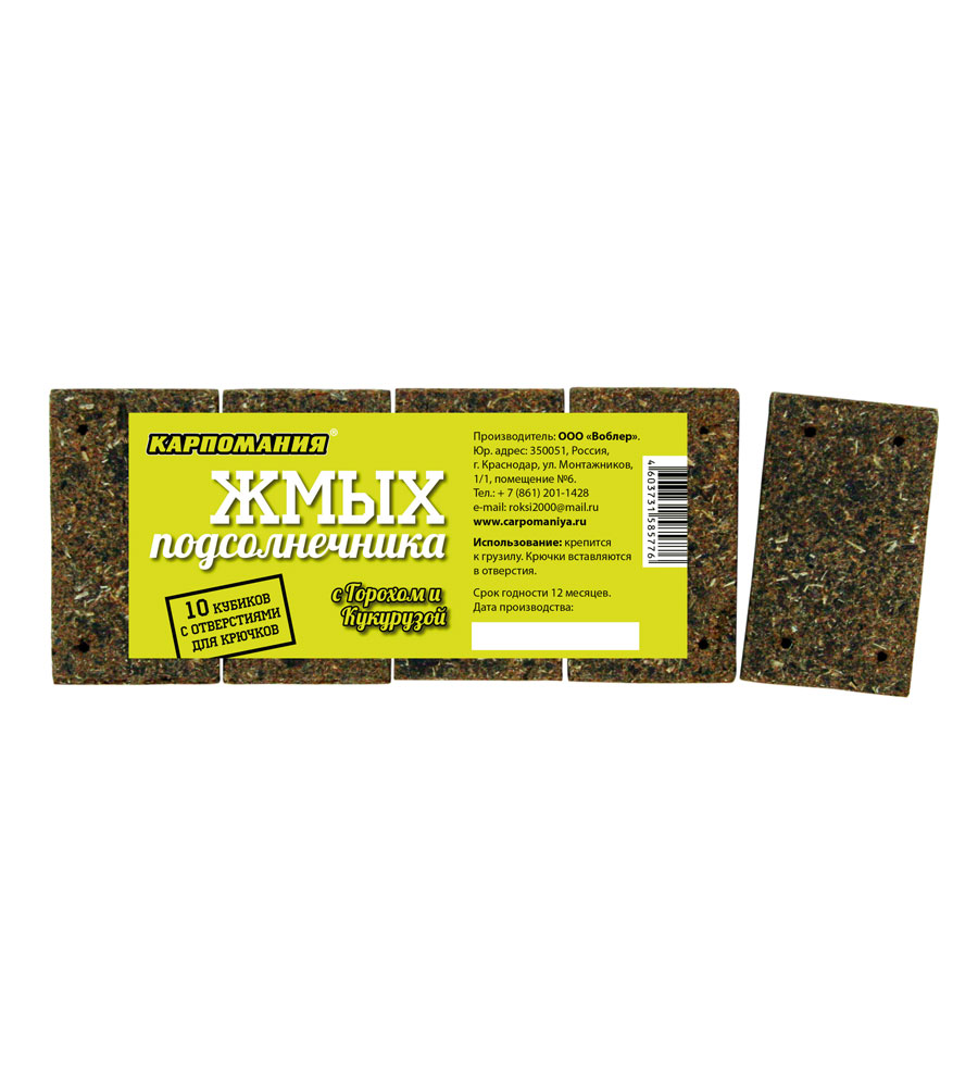 Жмых подсолнечника КАРПОМАНИЯ (Горох+Кукуруза) (10кубиков)