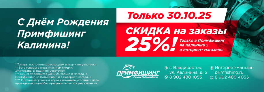 ***Акция проводится 30.10.25 только в магазине Примфишинг на Калинина 5 и интернет-магазине.