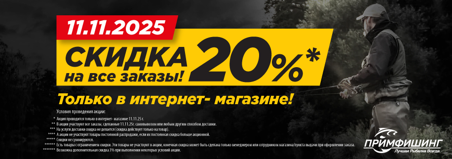 Во Всемирный День Шоппинга 11.11.25 в интернет- магазине primfishing.ru скидка 20%* на заказы!